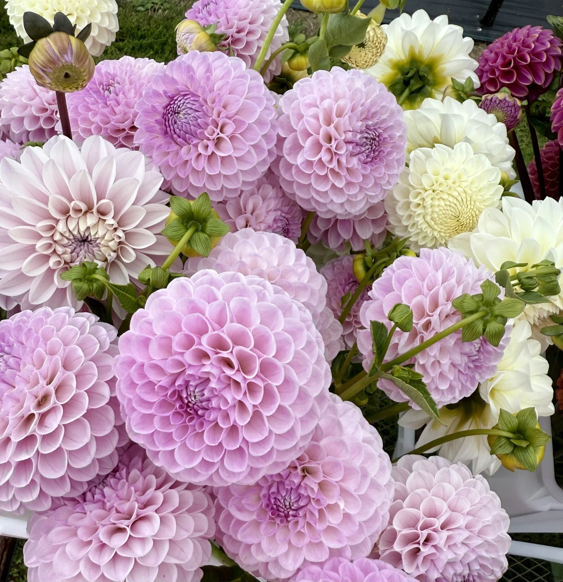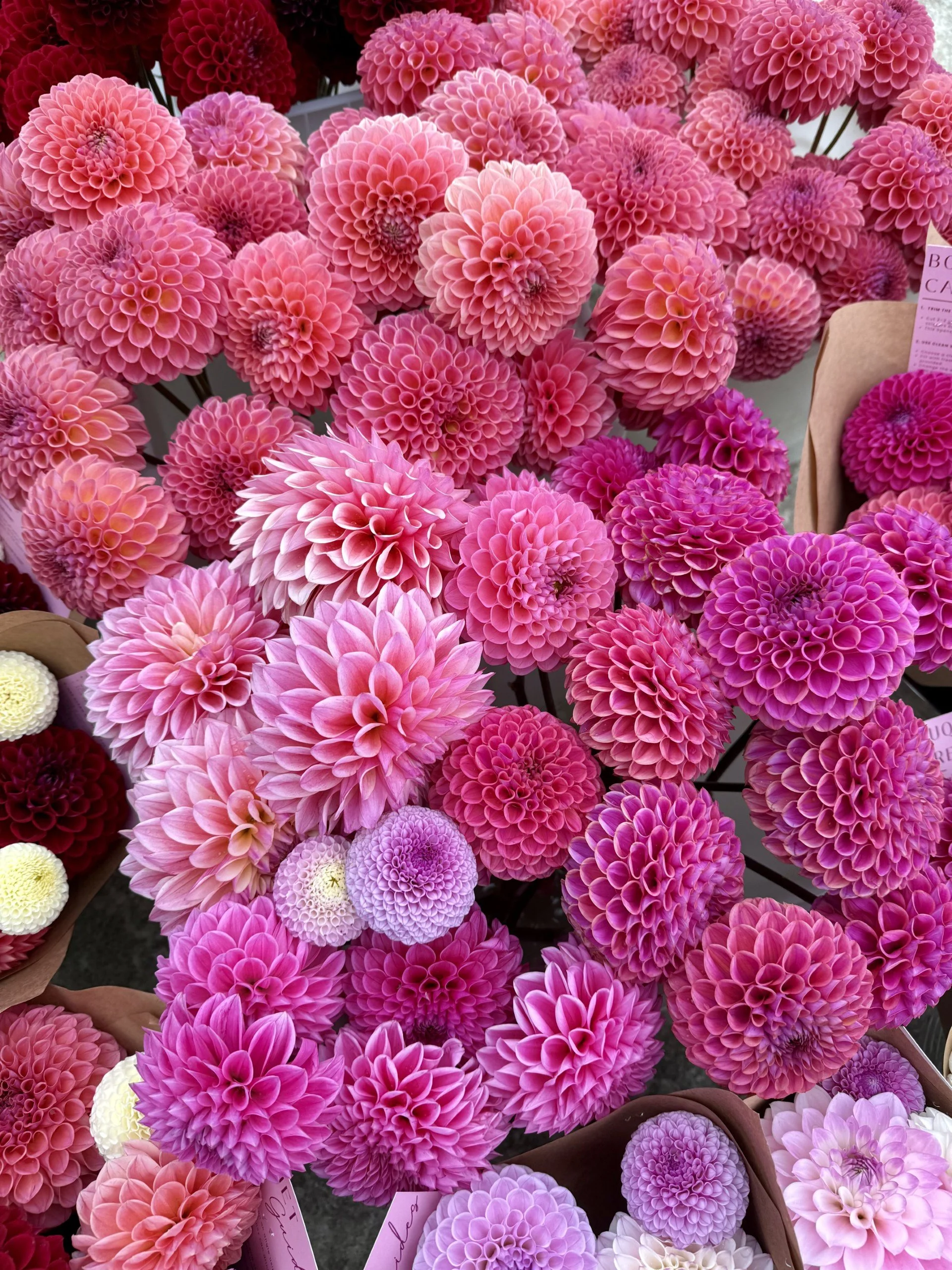Our shop is an extension of the farm itself. Everything you’ll find here is grown, curated, or created with intention, celebrating the beauty of seasonal flowers. Each stem is picked by hand at peak, ensuring long vase life and the best possible experience for our customers. In the shop you’ll find fresh bouquets, bloom buckets, dahlia tubers and seeds.