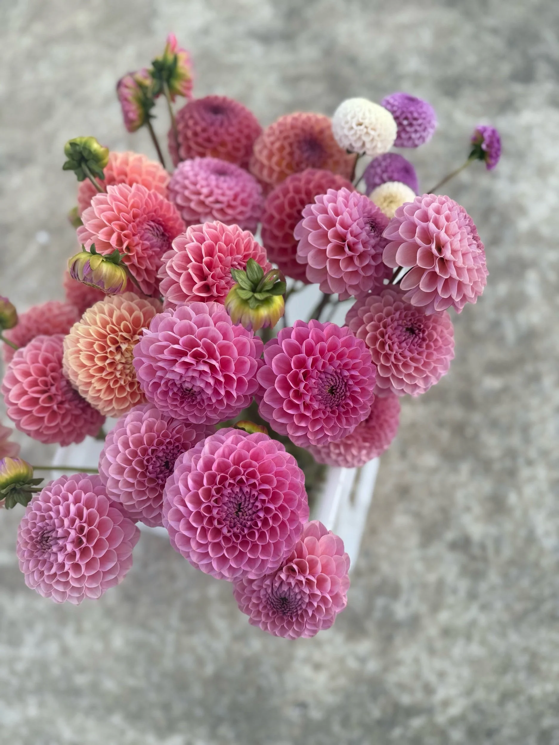 20–25 stems of freshly picked dahlias, grown on our farm. Perfect for events, weddings, or creating multiple floral arrangements.